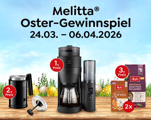¹Der Gutscheincode ist gültig bis 06.04.2026 im Melitta® Online Shop Österreich auf alle Produkte, ausgenommen Angebote, Melitta® LatteSelect (silber und schwarz), Refurbished Geräte, Sale und Ersatzteile. Nicht mit anderen Rabatten und Aktionen (z.B. Set-Angebote) kombinierbar. Nicht einlösbar auf bereits getätigte Einkäufe. Druck- und Satzfehler vorbehalten.