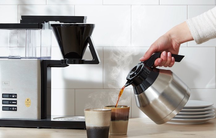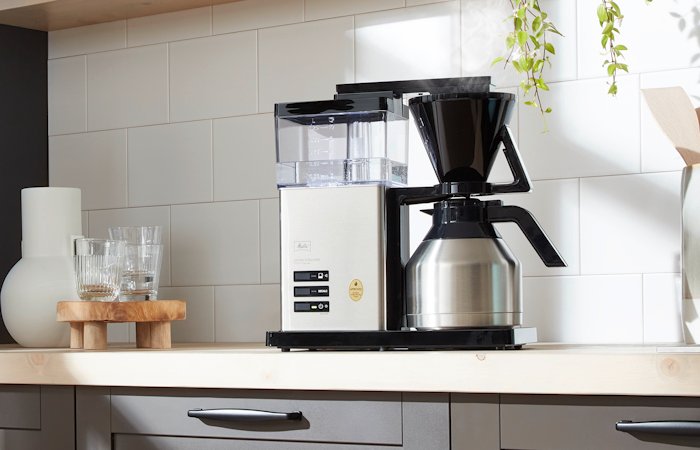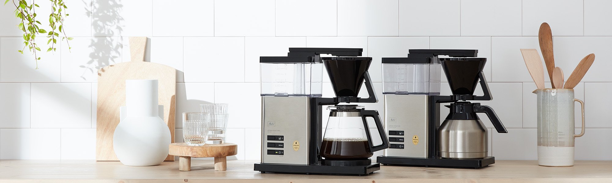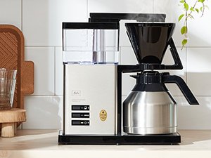 Die Melitta® AromaSignature® Therm DeLuxe Filterkaffeemaschine bietet besten Kaffeegeschmack, einfache Handhabung und Entkalkung.