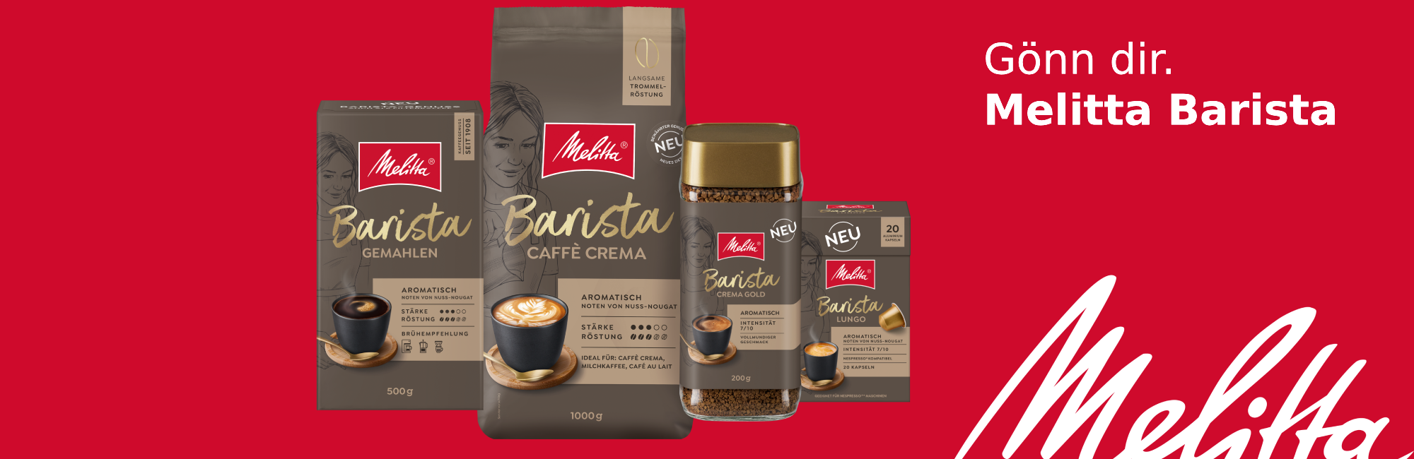 Wir denken Barista weiter: Zum ersten Mal gibt es den beliebten Coffeeshop-Genuss nicht nur als Ganze Bohne, sondern auch für Filter, Kapsel und Instant.