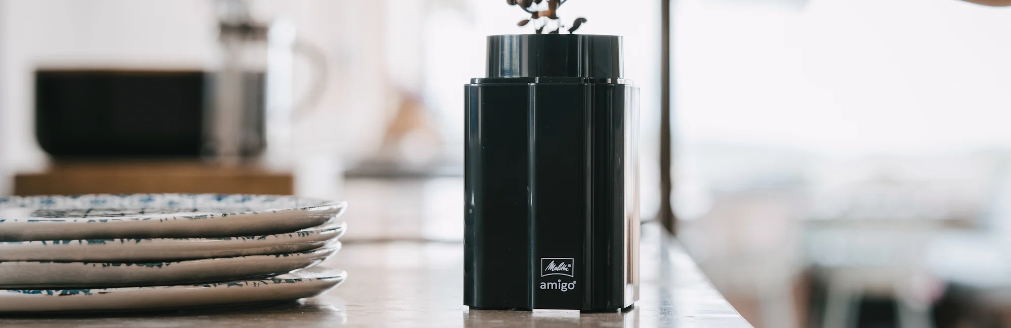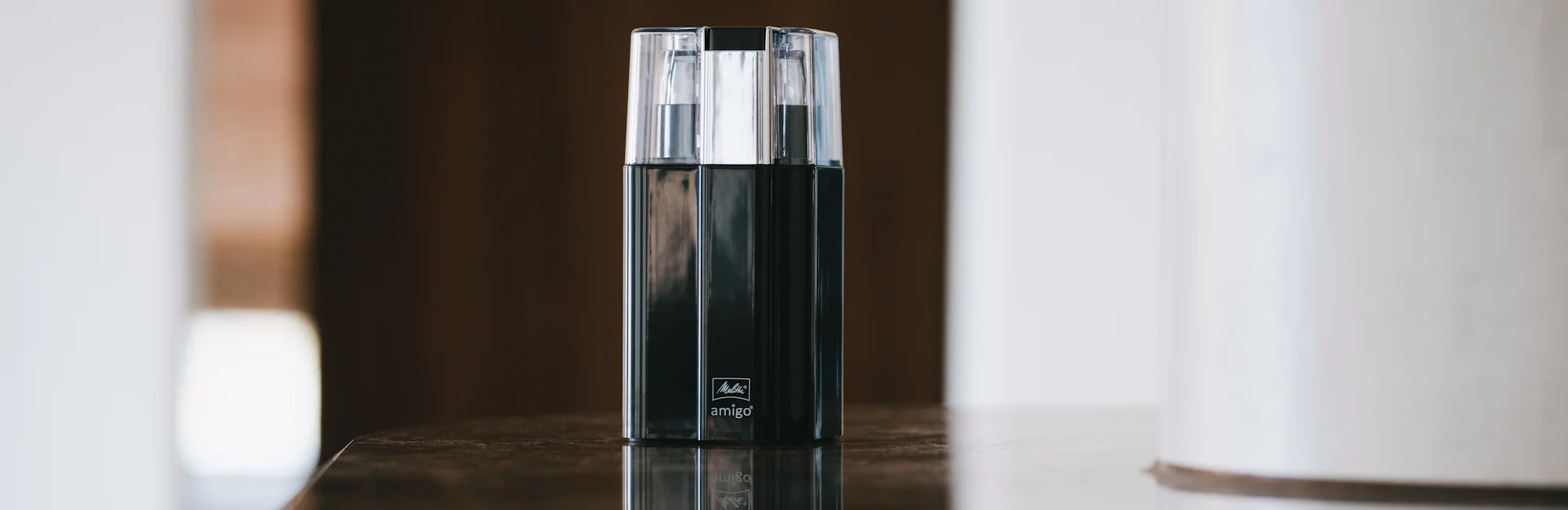 Unsere elektrische Kaffeemühle Melitta® amigo® mit einem Fassungsvermögen von 60 Gramm, zwei hochwertigen Schlagmessern aus Edelstahl und einer einfachen Bedienung garantiert frischen Genuss in jeder Tasse. Der Mahlvorgang wird durch die Dauer des Tastendrucks gesteuert, wodurch du den Mahlgrad individuell für verschiedene Zubereitungsarten bestimmen kannst. Frisch gemahlen - für deinen aromatischen Kaffeegenussmoment.€ 39,98*