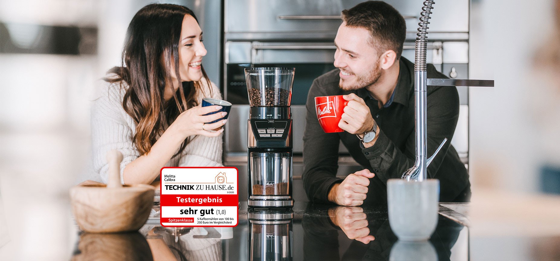 Das Online-Testportal „Technik zu Hause“ hat die Melitta® Calibra® einem umfangreichen Praxistest unterzogen. Mit der Gesamtnote „sehr gut (1,0)“ erzielte die Calibra® die bestmögliche Bewertung. „Unseren Messungen zur Folge macht die Melitta Calibra ihrem Namen alle Ehre. […] Die Kaffeemühle hat in allen getesteten Mahlstufen überzeugt – auch in der feinsten – und diese ist für die meisten Mühlen die größte Herausforderung“, so die Testredaktion.